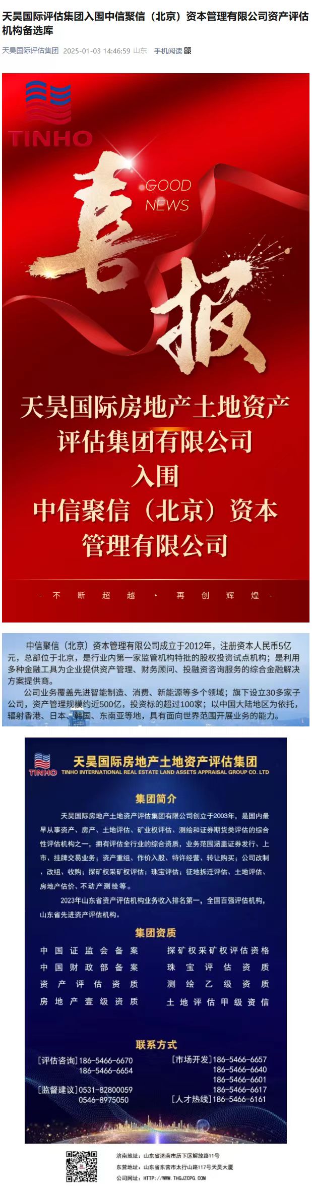 天昊国际评估集团入围中信聚信(北京)资本管理有限公司资产评估机构备选库