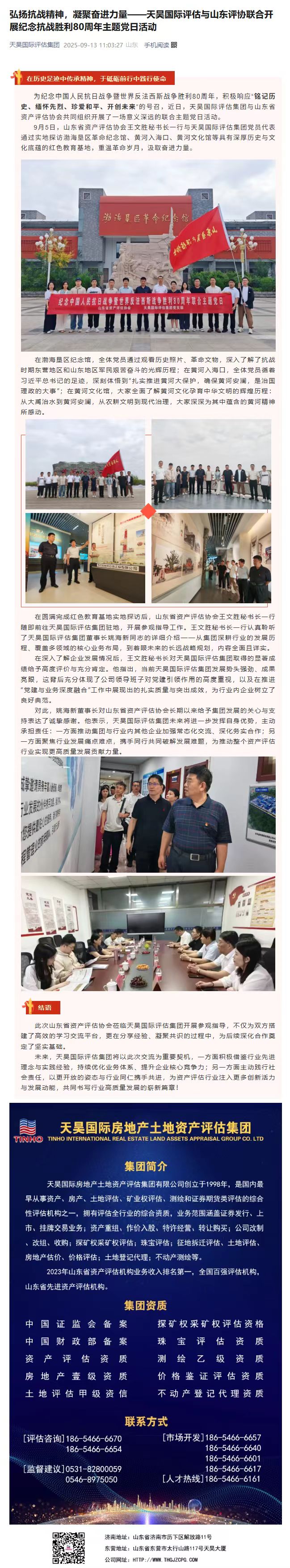 弘扬抗战精神,凝聚奋进力量——天昊国际评估与山东评协联合开展纪念抗战胜利80周年主题党日活动