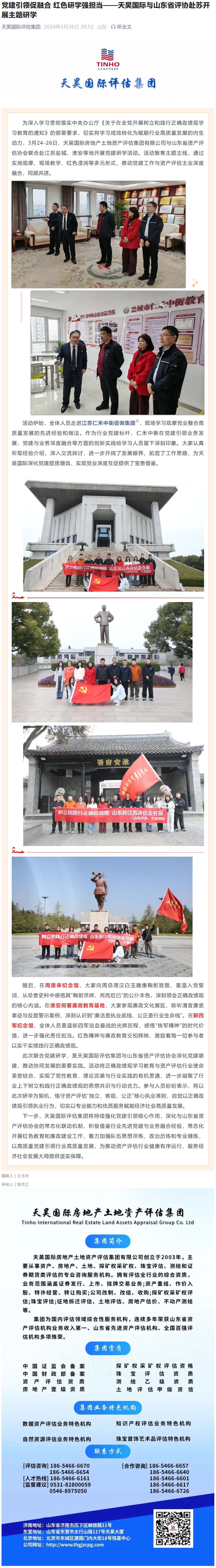 党建引领促融合 红色研学强担当——天昊国际与山东省评协赴苏开展主题研学