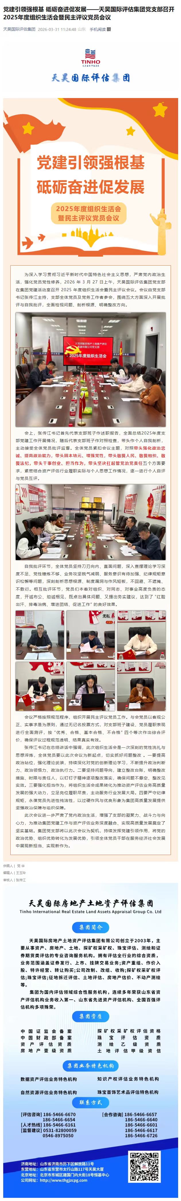 党建引领强根基 砥砺奋进促发展——天昊国际评估集团党支部召开2025年度组织生活会暨民主评议党员会议